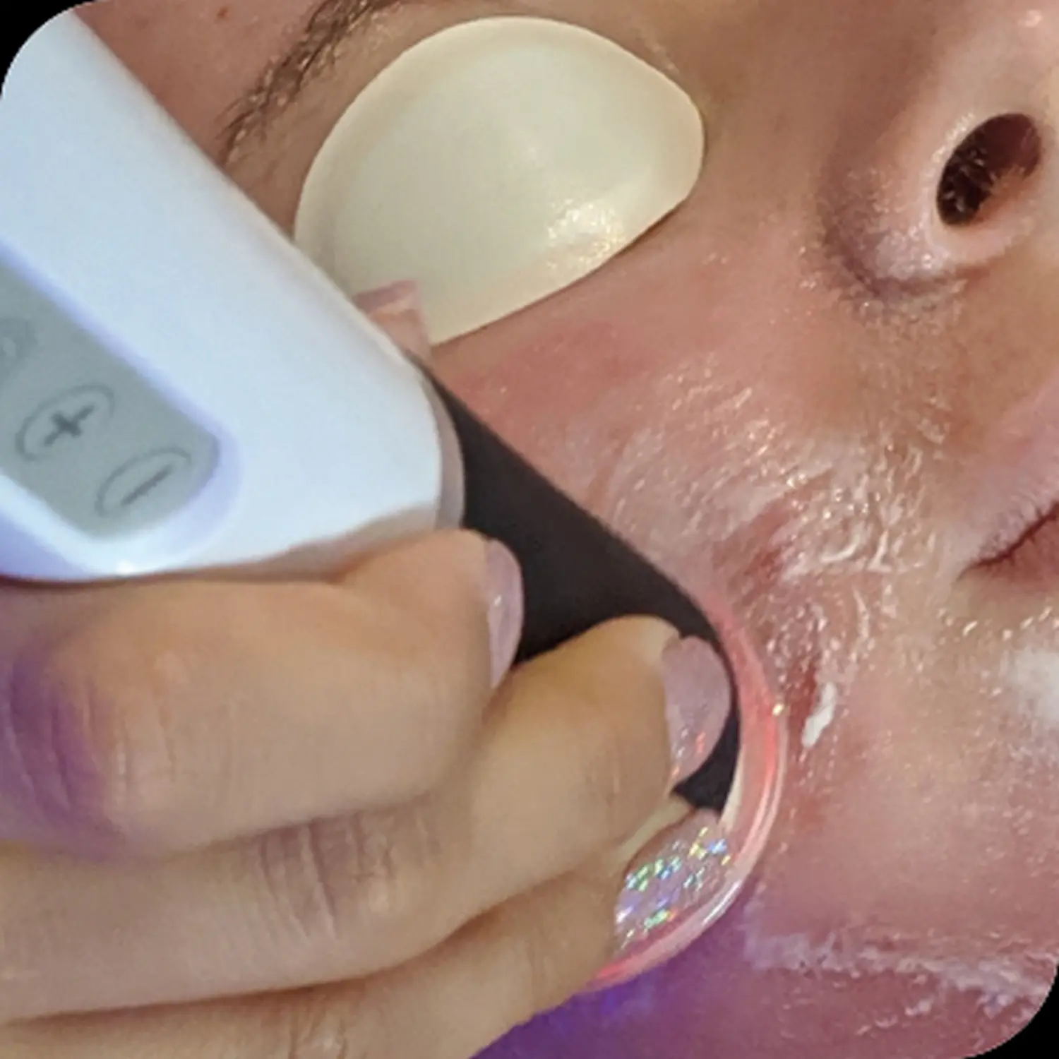 The 5°c instantly tightens the pores, decreases the surface blood supply giving an instant brightening and tightening effect on the skin and also ‘locks in’ moisture.